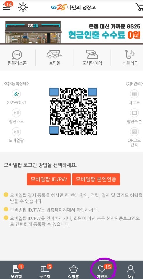 1. GS25 나만의 냉장고 어플을 설치합니다.