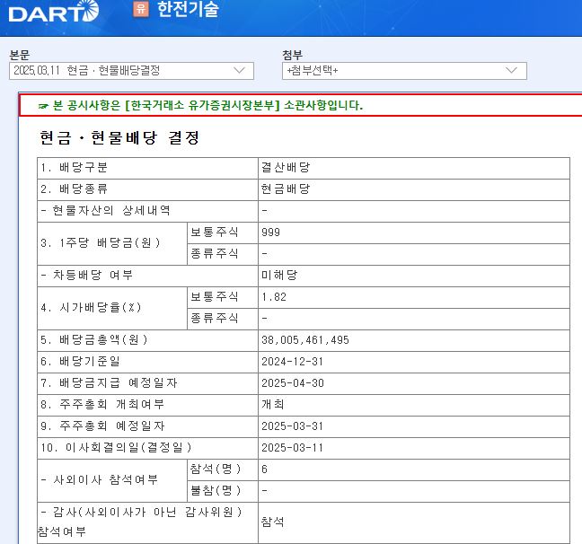 한전기술 2024년 12월 배당공시입니다.