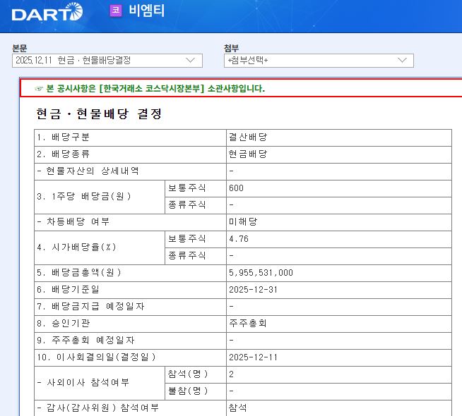 2025년 12월 배당공시입니다.